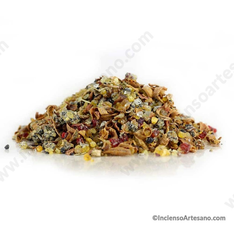 Esta mezcla única de resinas aromáticas, plantas y especias naturales destaca por su agradable y místico aroma.