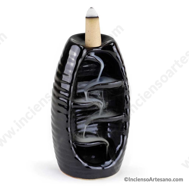 Quemador de incienso en cono de humo descendente o de reflujo, tipo cascada en fuente.